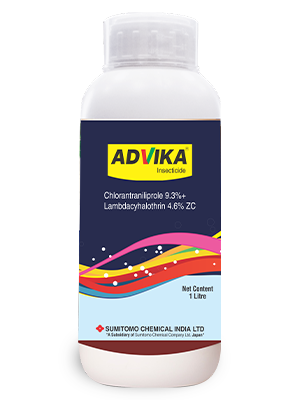 Advika® is advance combination of diamide & pyrethroid, With synergy of double impact on insect by targeting different site of action (system) and provides effective & broad spectrum control on wide range of lepidopteran insects.